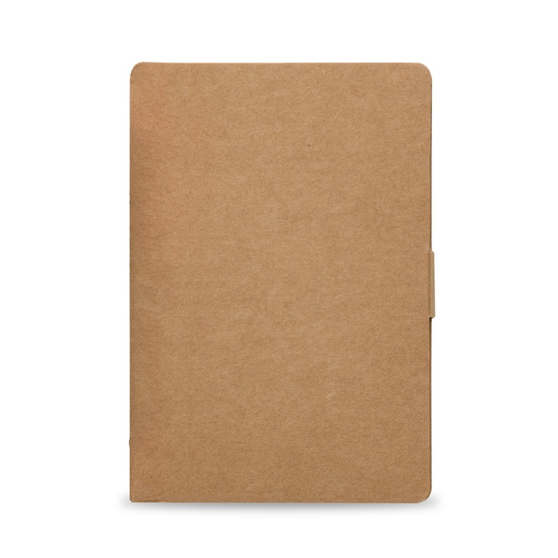Bloco de anotações ecológico, material em kraft. Possui uma trava na própria capa, cinco blocos autoadesivos coloridos com aproximadamente 25 folhinhas , bloco autoadesivo amarelo com aproximadamente 25 folhas e bloco grande com aproximadamente 70 folhas. OBS.: IMAGEM MERAMENTE ILUSTRATIVA, não acompanha caneta!