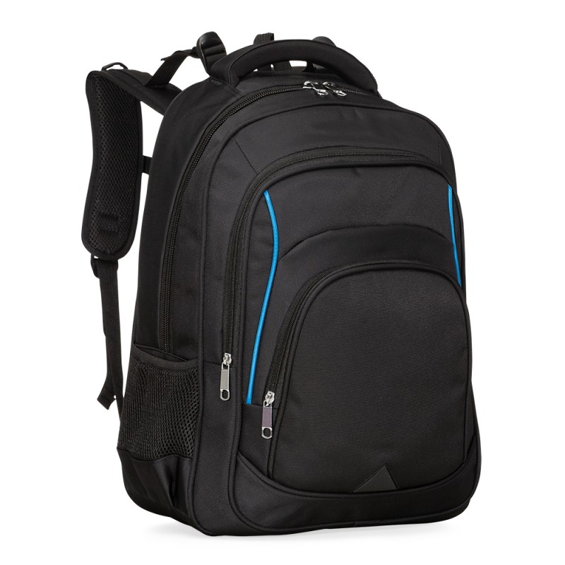 Mochila de alta confecção em poliéster com detalhes em nylon. Com amplo espaço, possui compartimento grande com bolso para notebook, compartimento mediano com divisórias para documentos, canetas, eletrônicos e entre outros.