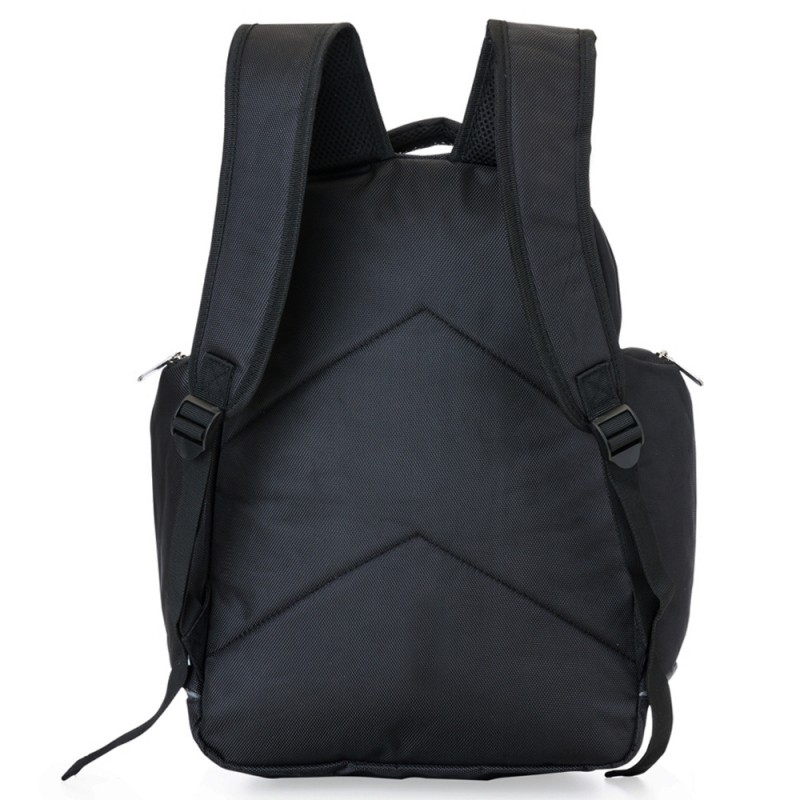 Mochila poliester para notebook com detalhes em nylon e neoprene. Possui compartimento grande com bolso interno, compartimento médio com detalhe interno, dois compartimentos frontais pequenos, compartimento térmico e compartimento pequeno frontal. Mochila preta com detalhes cinza, possui dois bolsos laterais e alça revestida com espuma para um maior conforto.