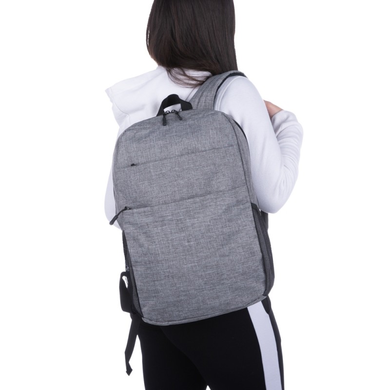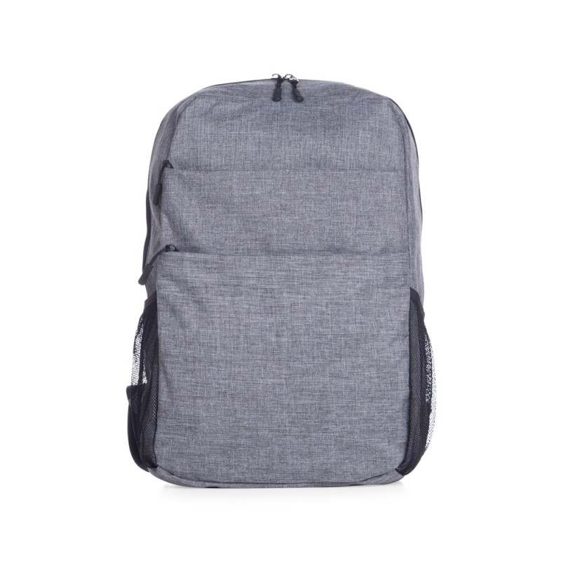 Mochila de nylon com compartimento para notebook. Possui compartimento grande com bolso para notebook e dois bolsos para documentos; compartimento frontal superior e compartimento frontal mediano, além de bolsos laterais em malha. Zíperes pretos, alça superior de nylon, alças para costa ajustáveis e parte traseira revestidas com espuma para maior conforto.