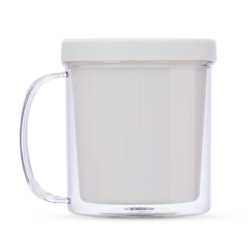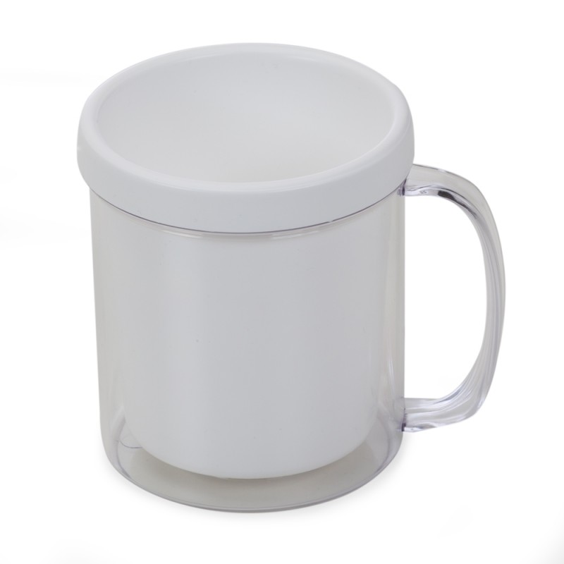 Caneca acrílica 350ml porta foto. “Copo” colorido pode ser removido para encaixar a foto em volta dele e posicionado novamente na caneca, tamanho da imagem 9 cm x 25 cm.