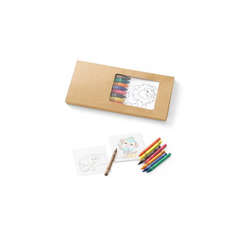 Kit para pintar em caixa de cartão. Incluso 8 gizes de cera e 8 cartões diferentes para pintar e pendurar. 180 x 90 x 10 mm
