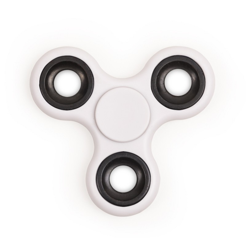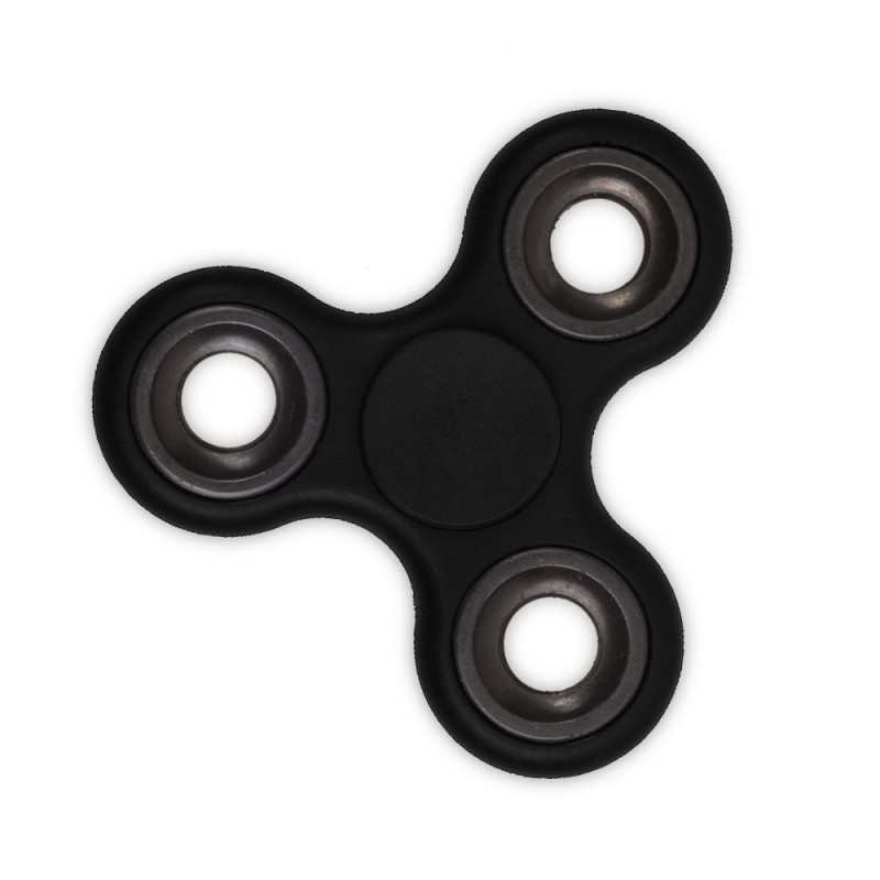 Spinner anti-stress colorido com arruelas metálicas. Material plástico resistente, possui três arruelas pretas de metal. Rolamento central, basta segurá-lo e rotacionar o item.