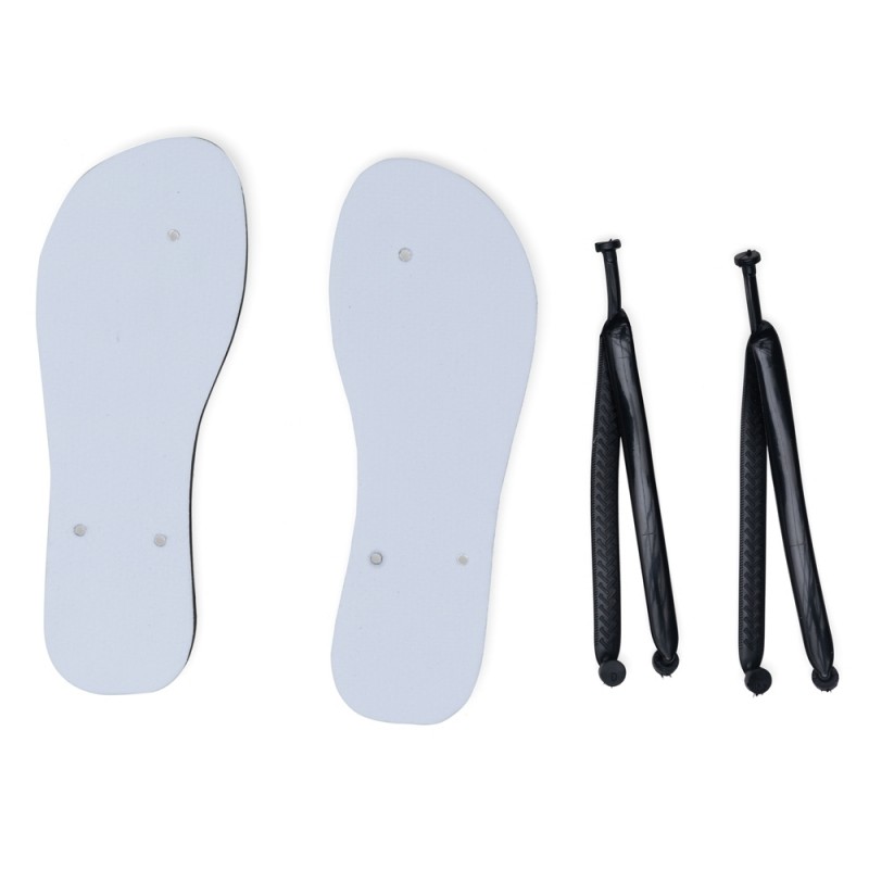 Chinelo numeração 29/30 de borracha(80%) e EVA(20%) com tecido para sublimação. PEDIDO MÍNIMO DE 250 PEÇAS!